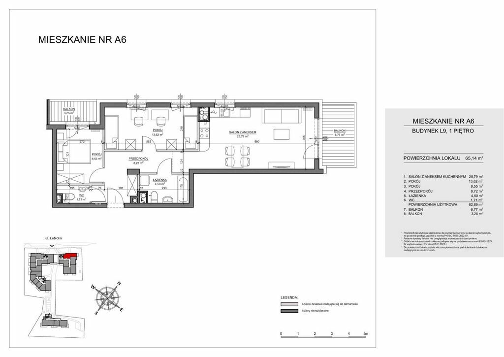 Lokal mieszkalny A-6, dwa balkony: 6,77 m + 3,25 m