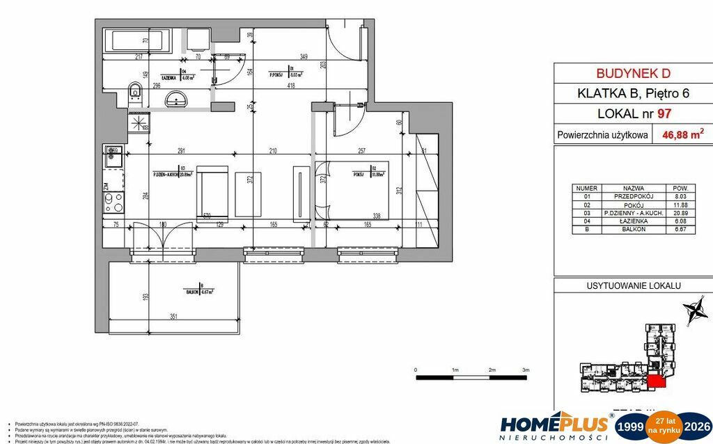 Mieszkanie nr: D97 (klatka B) - balkon: 6,67 m