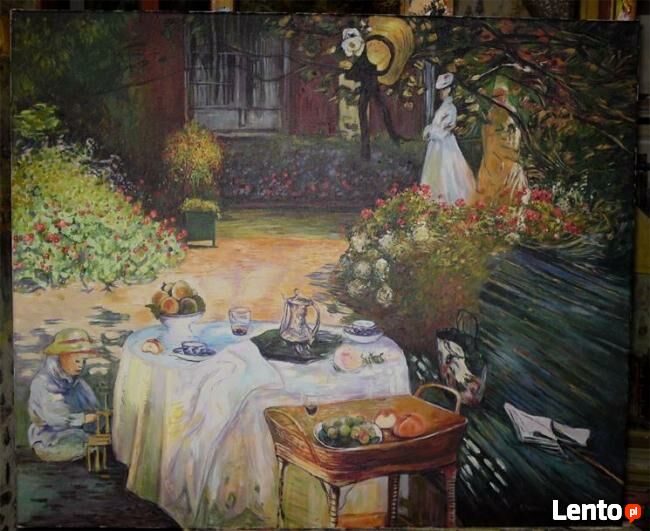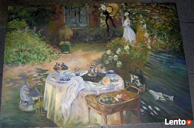 Kopia obrazu Claude Moneta "Śniadanie" wykonana przez Andrzeja Masianisa absolwenta Wydziału Sztuk Pięknych UMK w Toruniu.Format obrazu 65/54 cm ,technika- olej na płótnie .