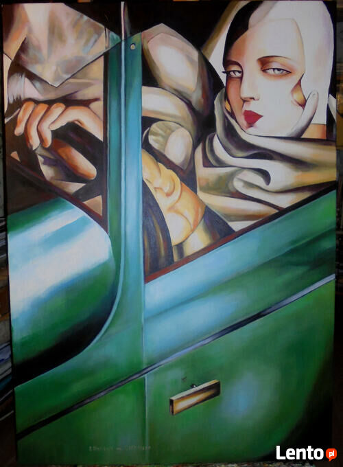 Kopia obrazu Tamary Łempickiej "Autoportret w zielonym bugatti"wykonana przez Andrzeja Masianisa absolwenta