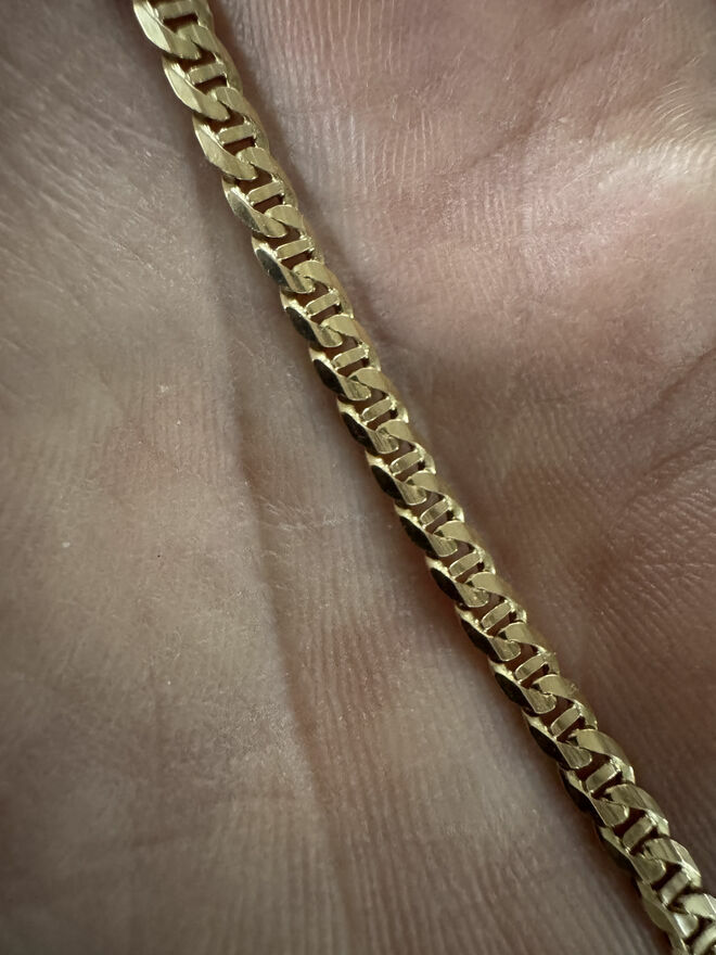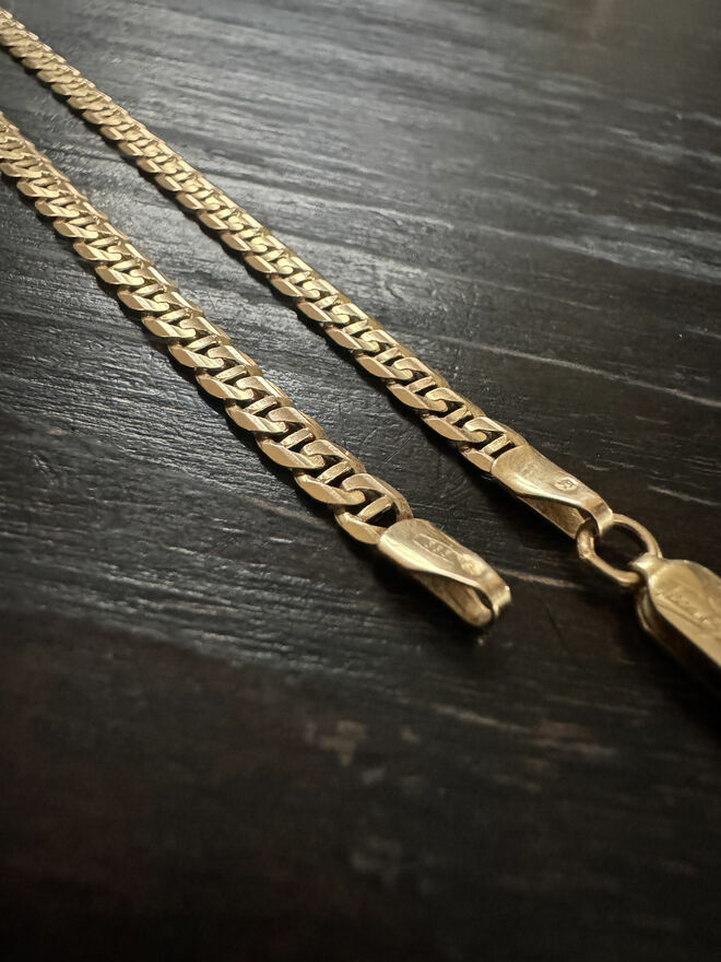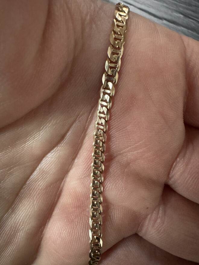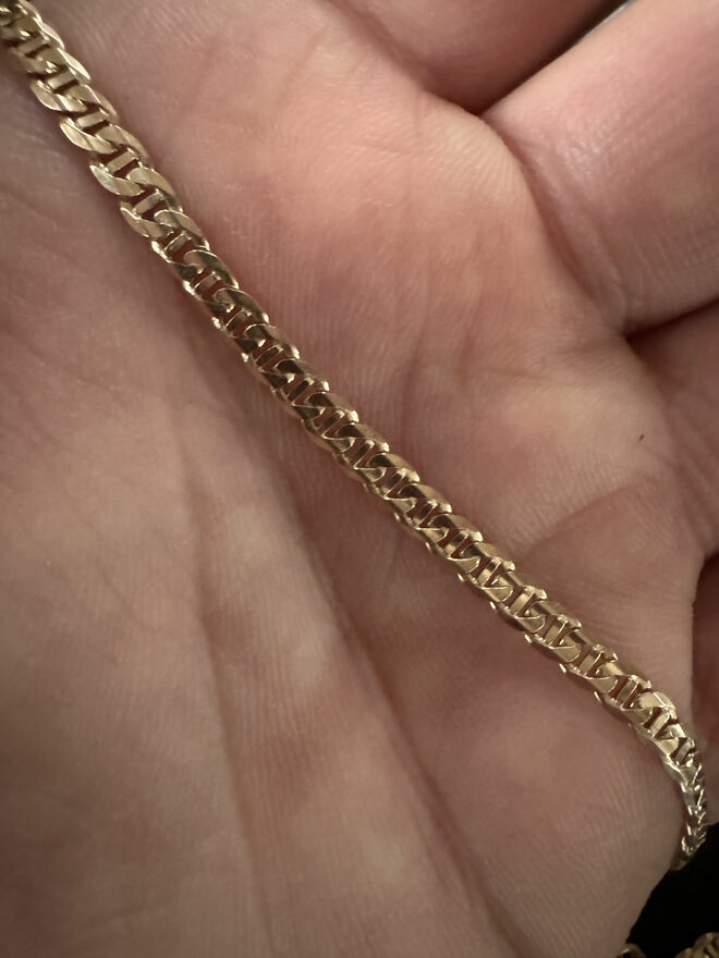 W perfekcyjnym stanie łańcuszek, idealny na prezent, nawet nie trzeba go polerować (byłem u jubilera w tym celu - stan jest perfekcyjny). Łańcuszek elegancki, idealny w proporcji, zwraca uwagę. Łańcuszek zakupiony u jubilera za około 11.000zł. Nie jestem zainteresowany zamianą. Odbiór osobisty: toruń lub wrocław, wysyłka po przedpłacie (możesz zamówić kontrolę u dowolnego jubilera jak i do niego zamówić sobie kuriera).
