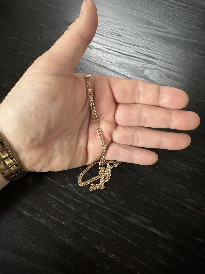 Dzień dobry, mam prezent, który chcę sprzedać:łańcuszek męski z pełnego złota, próba 585, waga: prawie 12 gram, splot: Gucci.