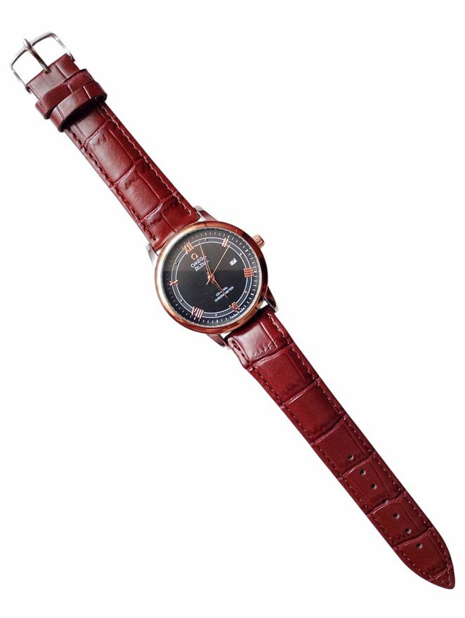 Oferuję fabrycznie nowy ekskluzywny, wizytowy zegarek męski Omega De VILLE koperta w kolorze złotym, tarcza grafitowa z złotymi wskazówkami i numeracją godzinową, pasek brązowy wszystkie zdjęcia są Real wykonywane osobiście. Zegarek pochodzi ze sklepu repliki24 i posiada roczną gwarancję. Jeżeli jesteś zainteresowany zakupem chętnie odpowiem na wszelkie pytania dotyczące oferowanego produktu. Atrakcyjna cena produktu wynika z braku sygnowanego pudełka, dokonując zakupu otrzymasz sam zegarek w podstawowym pudełku zastępczym.(11)
