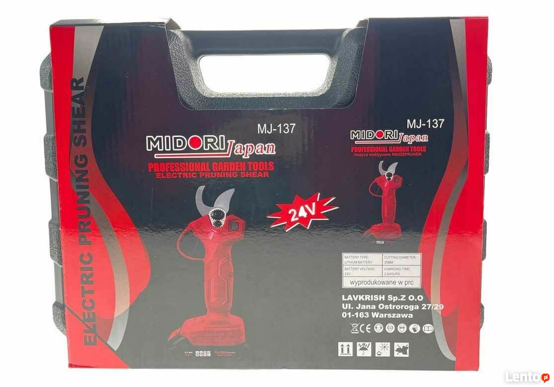 Witam,W sprzedaży Sekator akumulatorowy Midori Japan 24V MJ-137.