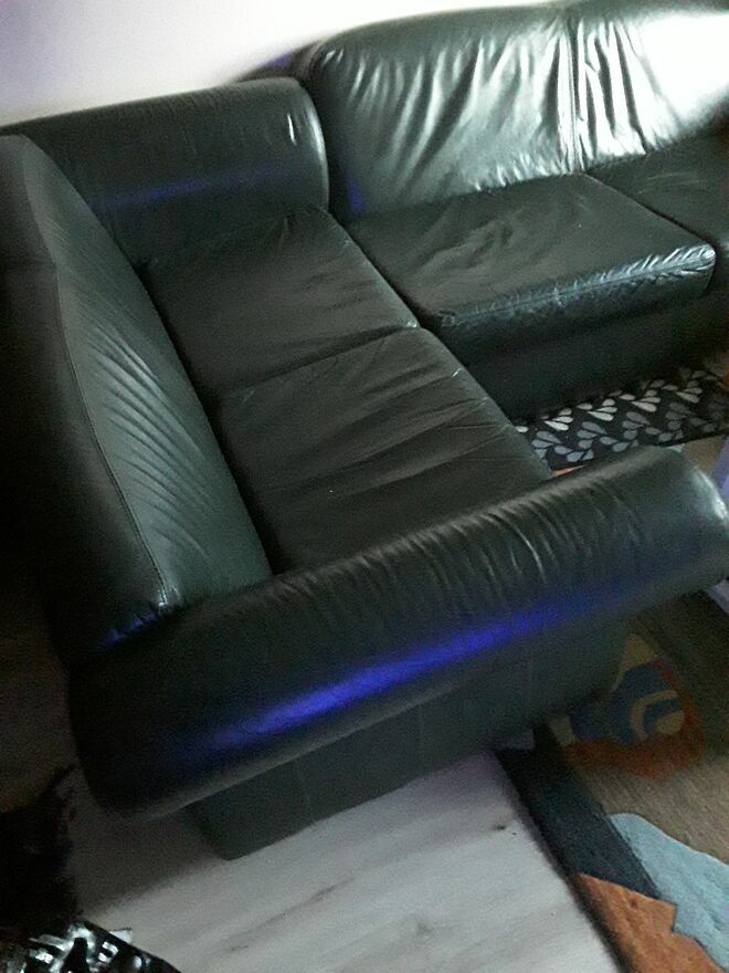 Sprzedam kanape narożników że skory koloru ciemna zieleń w bardzo dobrym staniePo przeprpwdzce z Holandii