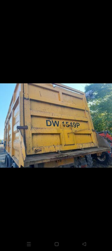 Sprzedam naczepę wywrot stalowa podwyższana o 70 cm z dorobionym szybrem pod zboże lub kamień wysokość na wysokim siodle 3,75 na niskim 3,68 przechodzi spokojnie pod wiadukty 3.5 ,ładowność 32 tony na spokojnie ośki sprawne ,hamulce bębny bez regulatorów rama nie zgnita w dobrym stanie siłownik szybko podnosi i opuszcza jest to klapa bez drzwi przerobiona z patelni dorobione śruby mocujące na bokach blokujące otwarcie klapy do wysypu przez szyberek ,plandeka ma kilka dziur jest możliwość jej sklejenia po uprzednim kontakcie .waga około 7 ton więcej pod numer tel 697xx693xx838 lub zamiana na firankę z sprawnym dachem i muldą za dopłatąMariusz